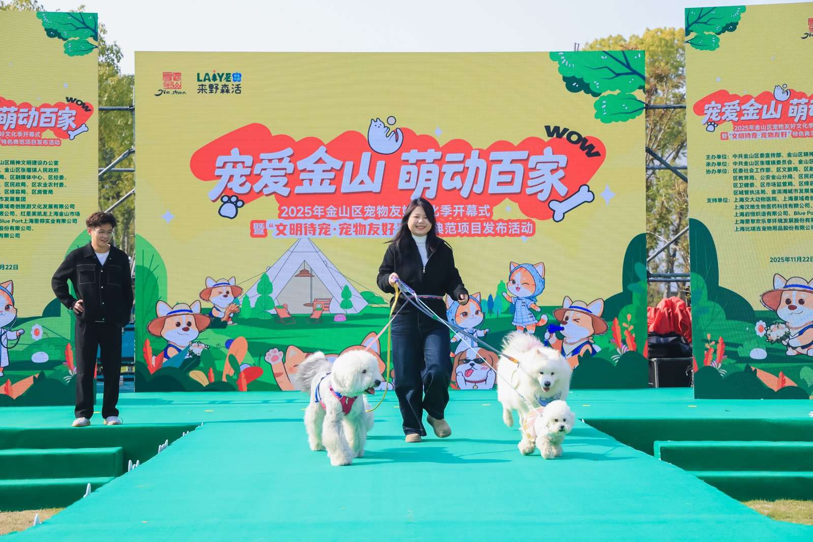 露天草坪上搭起T台,身着各式可爱装扮的“毛孩子们”迈着自信步伐与主人默契互动,引得现场阵阵掌声与欢笑不断……11月22日上午,“宠爱金山?萌动百家”——2025年金山区宠物友好文化季开幕式暨“文明待宠·宠物友好”特色典范项目发布活动在金山区张堰镇百家村举行。